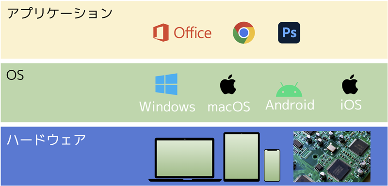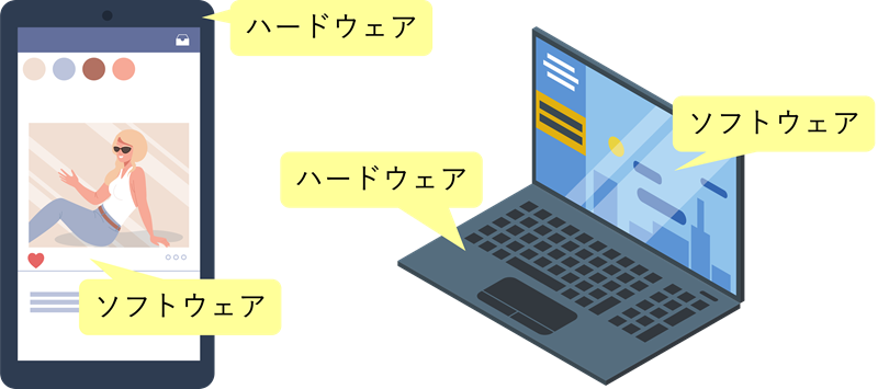 ハードウェア(コンピュータ本体)とソフトウェア(アプリ・システム)の関係