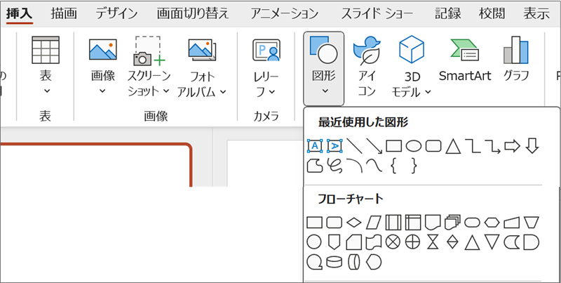 PowerPoint や Google Slide などのオフィスソフトを使う場合は、「挿入」タブの「図形」メニューから「フローチャートの記号」を選んで配置し、カギ線コネクタなどの矢印を使って手順をつなぎます。オフィスソフトはビジネスの現場で広く使われているため、誰でも気軽に始められます。