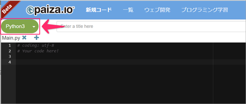 エディター画面の左上で「Python3」を選択すると準備完了です。