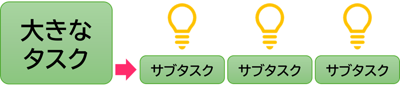 大きな問題を分解することで、1つ1つのサブタスクで行なうことが、明確になりましたね。